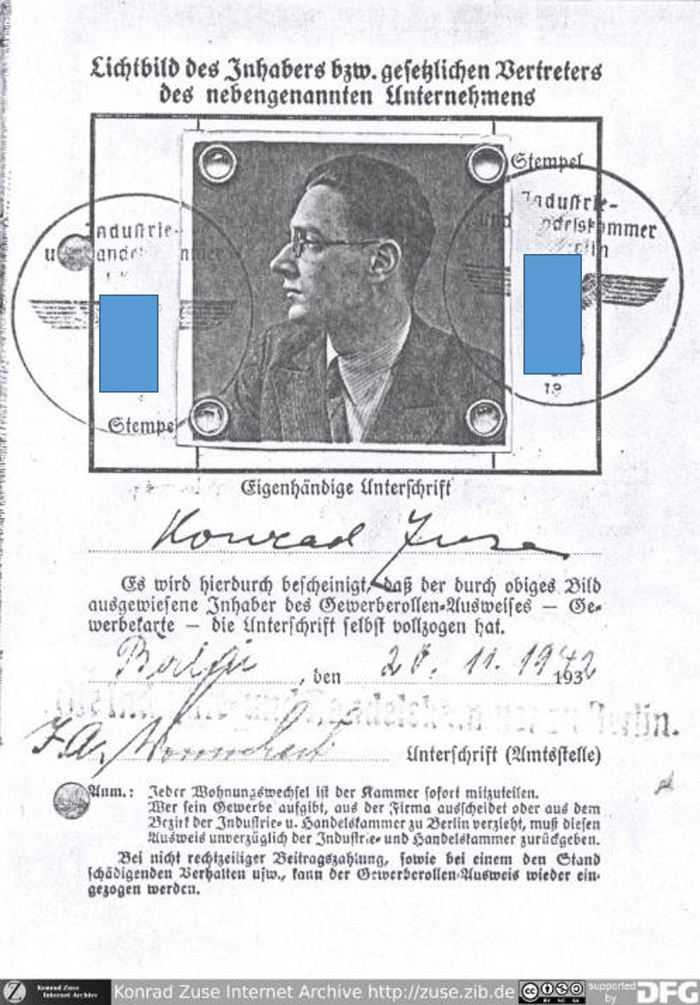 После окончания института и недолгой работы на авиазаводе (именно эта работа, возможно, спасла ему жизнь в дальнейшем), Конрад решил заниматься бизнесом и создать собственный компьютер. Мастерская в родительском доме, финансовая и техническая помощь друзей позволяют приступить к созданию первого механического компьютера.