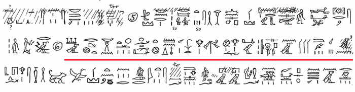 Приведенные выше иероглифы сообщают о том, что тысячи либу (ливийцев) были убиты, а выжившие взяты в плен, отправлены маршем на юг от Мемфиса и посажены на кол. Дата этой битвы, в которой участвовали не только либу, но и их союзники мешвеши (другое племя из Ливии), а также Народы моря (которые являются одной из причин так называемой Катастрофы бронзового века) произошла в 1209 году до н.э.
