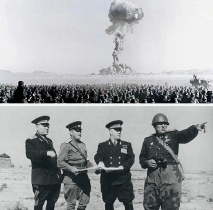 В общем, примерно такими в моём мозгу видятся размышления Советского руководства, ибо другой причины для проведения учений с параллельным применением ядерного оружия и живых людей я придумать не могу. Справедливости ради, к тому моменту США уже успели провести несколько таких учений, а потому им было известно влияние применения ЯО на личный состав, технику и ландшафт местности, а вот Союз такими знаниями не располагал.
