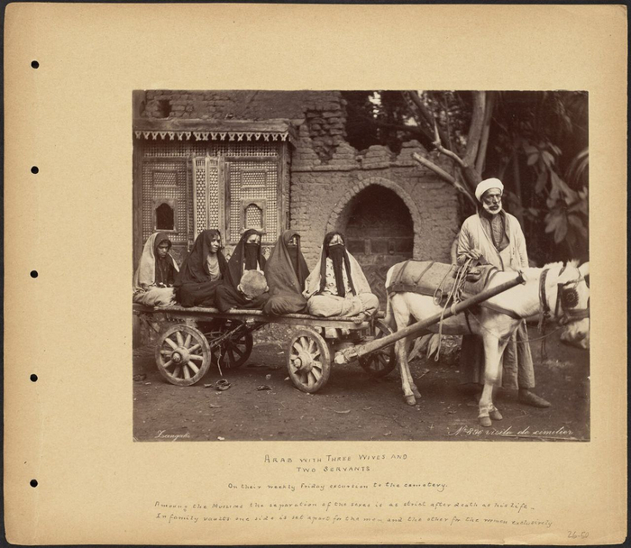 Арабский мужчина с тремя женами и двумя служанками. Египет, 1860-1890 гг.