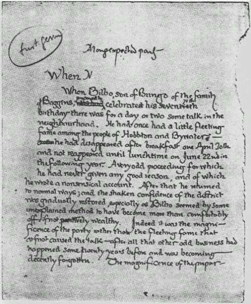 Так выглядела первая страница романа «Властелин колец» Дж. Р. Р. Толкина. 1937 год