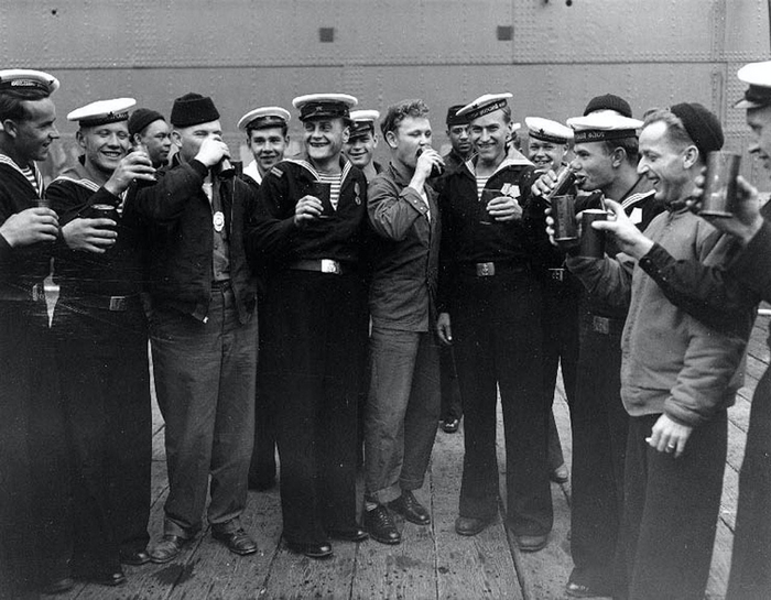 Советские и американские моряки празднуют капитуляцию Японии, 1945 год.