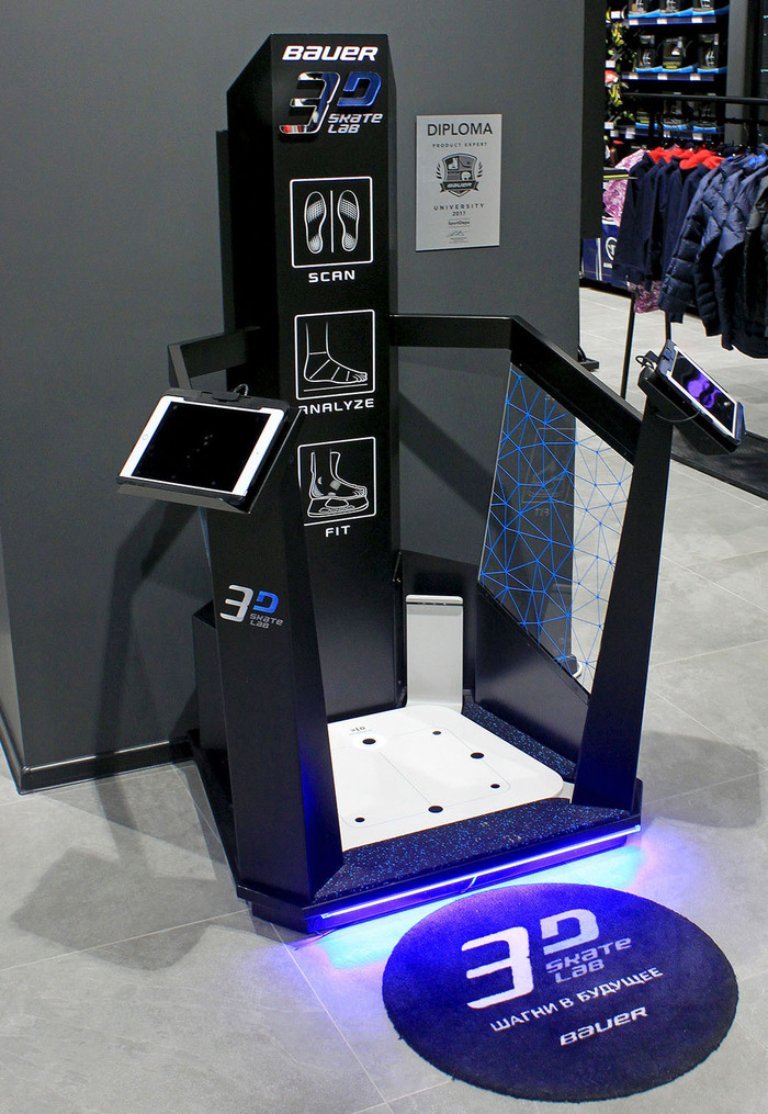 Так же у некоторых производителей есть специальные 3D сканеры, которые позволяют узнать все параметры ноги и подобрать максимально подходящую модель, а так же использовать эти данные при изготовлении индивидуальных моделей коньков для профессионалов.