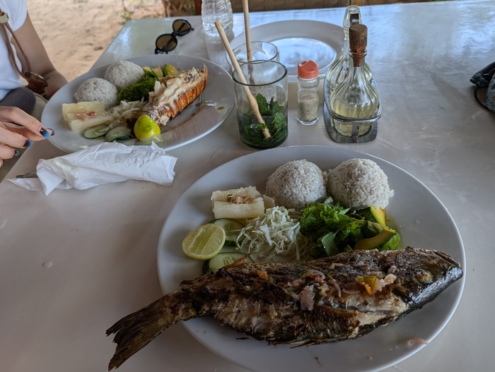 Но Куба понравилась больше. Если опустить тот факт, что на Кубе я не смог найти лейкопластырь, то туристов кормят на острове Свободы куда разнообразнее и вкуснее. Например, такого вот Лангуста у океана можно скушать за +/- червонец (за этот обед отдали меньше двадцатки).