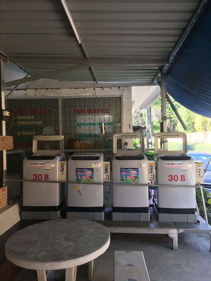 Так как стиральной машины ни в одной моей квартире не было, в выходные я стирал вещи в общественных прачечных у дома. Это стоило 30—100 THB (72—241 ₽) в зависимости от качества сервиса.