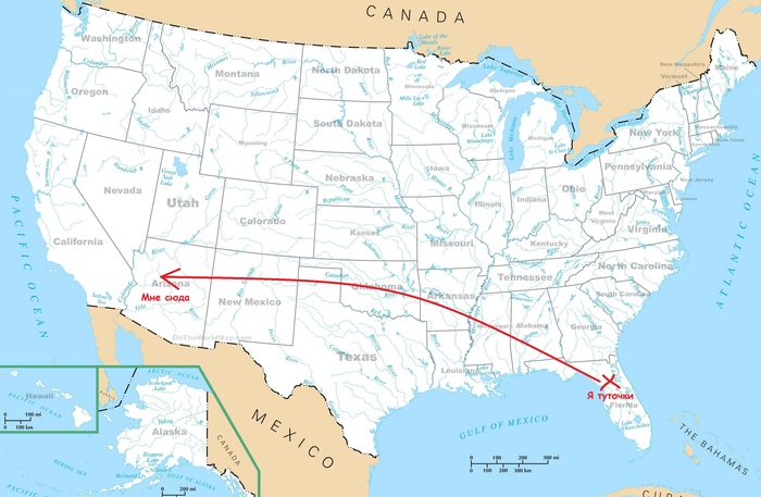 Во - вторых, я наконец вернулся из далекой и жаркой Аризоны в поросшую березками родненькую Флориду. Аризона большой и богатый штат, на который приходится 2/3 всей меди добываемой в США дальше_иду_тфакты_из_Википедии... Отпуск прошел отлично и тут вы можете спросить меня "Енот, чот ты распизделся, а где фоточки из Аризоны?!" Ребят, тут такое дело... Не, фоточки конечно будут, НО. Планируя свой первый отпуск в Вечнозагнивающей, я исходил в первую очередь из финансовой стороны вопроса и посему не учёл один факт. Аризона это ОХРЕНЕТЬ какой большой штат, так - то. И если Флорида вытянута и по форме напоминает пенис, то Аризона, это прямоугольник. ОЧЕНЬ. БОЛЬШОЙ. ПРЯМОУГОЛЬНИК. Поэтому посетить всё (ну или почти всё) что я хотел, я бы не смог при всем желание. А значит вычеркиваем из списка желаемого семиметровые кактусы и каменные деревья.