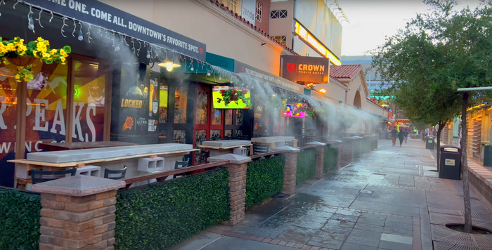 Кстати, эти поливалки на крыше ресторанчика - не элемент декора. Они тут реально почти по всюду и неплохо так охлаждают улицу.