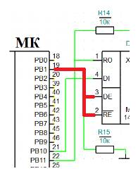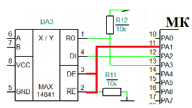 Резисторы R11 и R12(10 кОм) - устанавливают стабильный логический уровень на управляющих выводах RE и DE, таким образом они предотвращают ложные переключения при старте системы.
