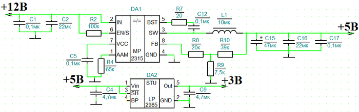 На выводы 6(А) и 7(В) микросхемы DA3, поступают данные от энкодера, выводы подключены через согласующие резисторы: