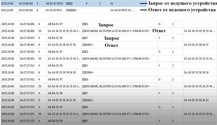 Ведомое устройство агрегирует запрашиваемые параметры, формирует пакет данных и передает его ведущему устройству для последующей обработки.