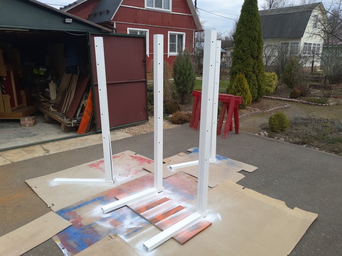Грунтуем (попытка убуречь от влаги, на дачу же). Одну половину досок покрыл антигравием, другую покрасил (использовал что было в наличие)