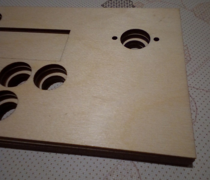 1. Корпус. Материал - фанера. Технологично, режется лазером очень точно (нет! об этом ниже), есть опыт работы, есть резчик. Делаем бутерброд из нескольких листов, т.к. нужно как-то зафиксировать толкатели, скрыть плату и т.д. Фанеру можно ошпаклевать и покрасить, есть знакомый с автомастерской. Эта часть понятная.