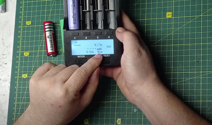 Если нужно зарядить быстрее, нажимаем кнопку "MODE" и можно изменить режим тока зарядки. Имеется четыре тока зарядки: 300, 500, 700 и 1000 mA.