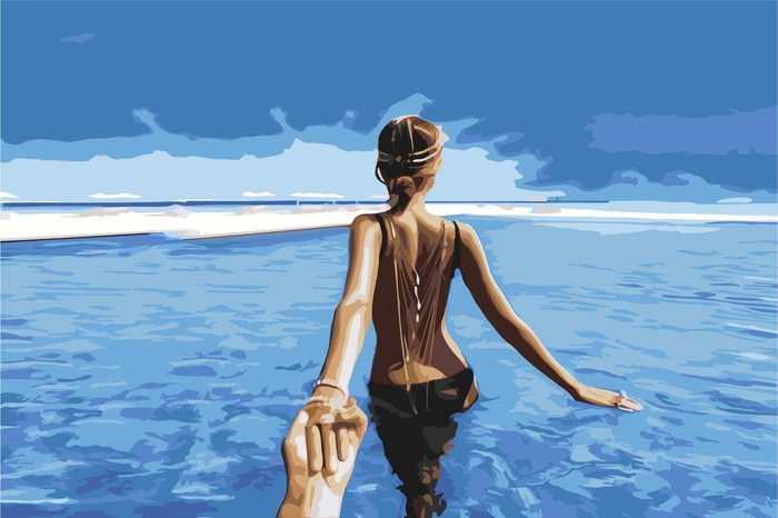 Картина по номерам Следуй за мной 40x50cm DIY Frame «Девушка». Пляж. Ссылка на картинку для самостоятельного рисования