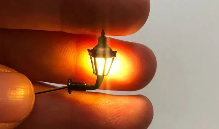 Миниатюрный светодиодный фонарь 1:25. Стоит 3 штуки 330 руб. Ссылка на набор. Также есть других масштабов