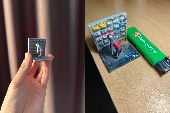 Сборная модель рекламного баннера в масштабе 1/43. В набор входят как детали для сборки основной конструкции, так и печатные текстуры (Пятёрочка и Теле 2), которые необходимо вырезать ножницами, после чего приклеить. Клей и краски в комплект не входят! Стоит набор около 480 руб. Ссылка на набор.