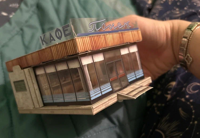 Сборная модель "Кафе-стекляшка", картон, 1:87. Стоит 300 руб. ссылка на неё