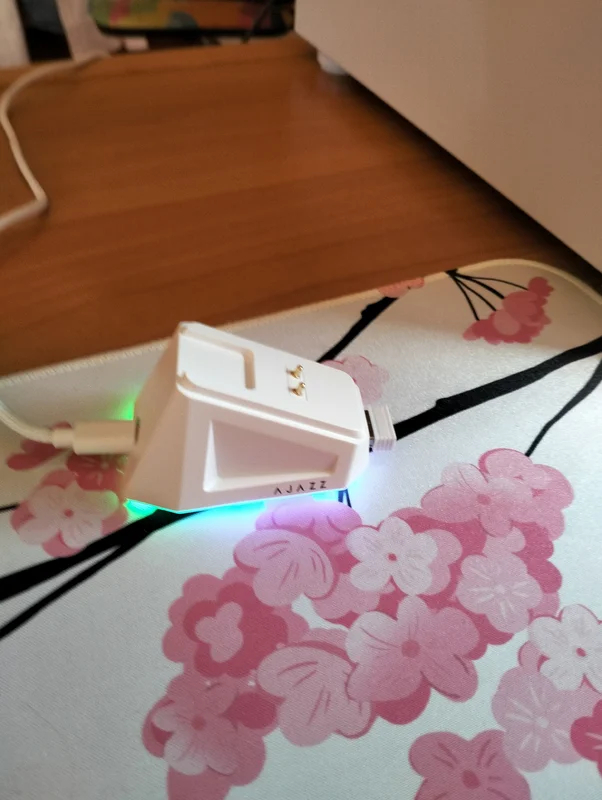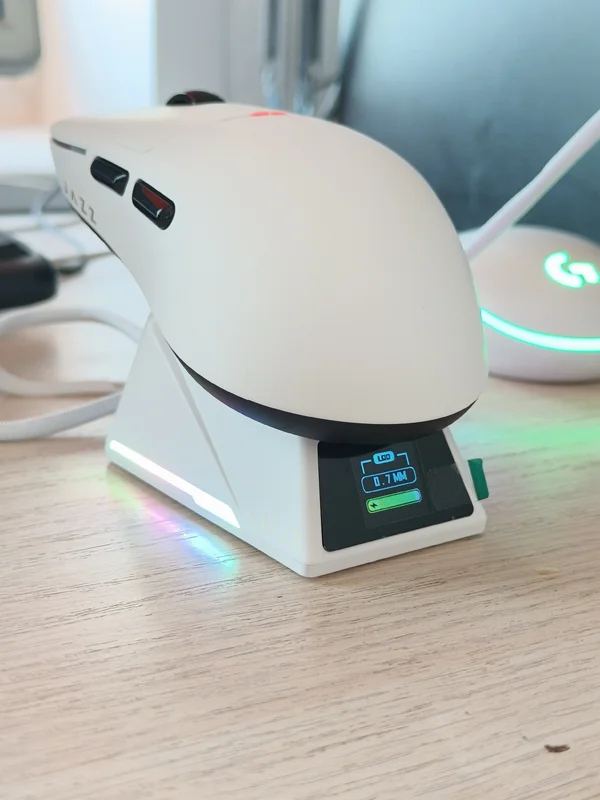 Довольно крутая компьютерная беспроводная мышь AJAZZ с зарядной станцией, на которую нужно её просто положить и она начнёт заряжаться, а индикатор зарядки отображается на экране. Производителем также заявлено, что мышь может работать как в беспроводном , так и в проводном режиме. Ссылка на такую мышку. Есть ещё чёрного, голубого и оранжевого цвета.