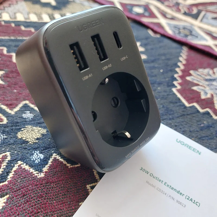 Интересное зарядное устройство-переходник UGREEN 30 Вт для розетки с 2 USB и USB-C. Стоит такое около 1800 руб. Ссылка на него