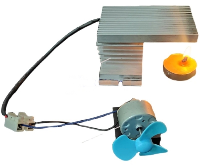 Вентилятор работающий по так называемому эффекту Зеебека возникновении электрического напряжения в цепи из последовательно соединенных разнородных металлов, контакты между которыми находятся при разных температурах. Стоит такой около 2 200 руб. ссылка источник