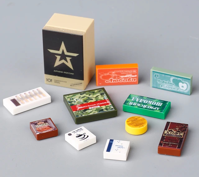 Сухпаёк в виде деталек от Лего с костром и курочкой. Ссылка на набор