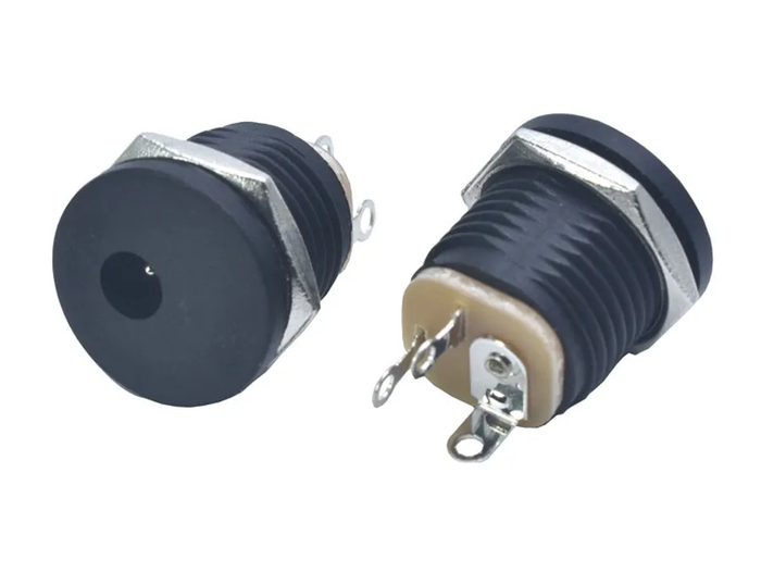 Разъем питания с гайкой. Внутренний диаметр 5,5 мм, pin 2,1 мм. Ссылка на него