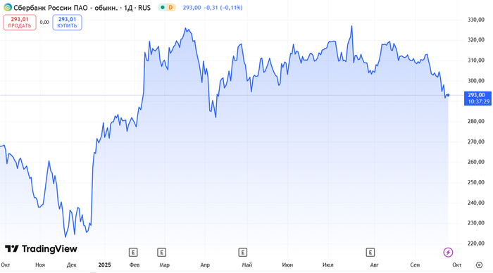С первого неподнятия ключевой ставки в декабре 2024-го года, цена за два месяца выросли с 230 до 320, теперь болтаются в диапазоне 290-310 ₽ за акцию. При такой цене дивиденды от Сбера на уровне дальних ОФЗ, с поправкой, что дивиденды, иногда такое бывает, они растут, а в ОФЗ выплаты фиксированы.