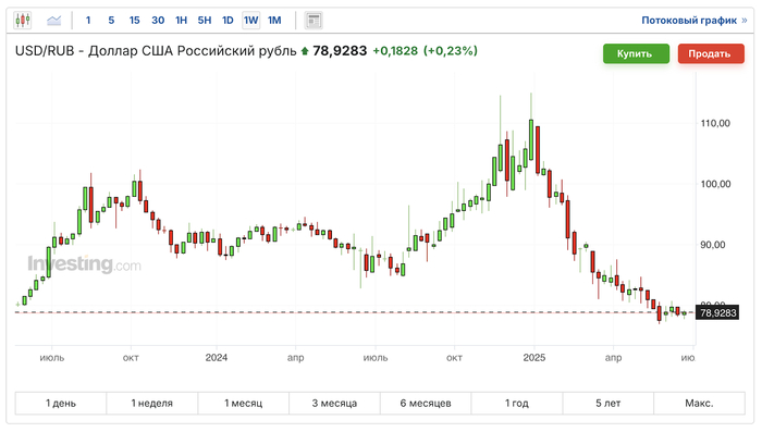 Крепкий рубль продолжает оставаться крепким. 78,4 ₽ за доллар