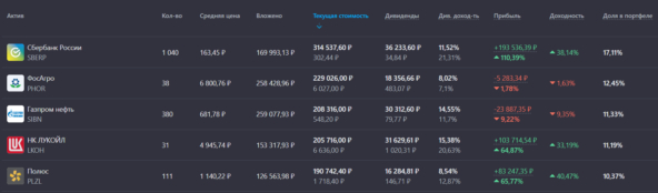 По мере роста портфеля, купонные выплаты будут становится жирнее,, облигации, как для поддержки штанов, основная часть портфеля концентрируется в дивидендных акциях.