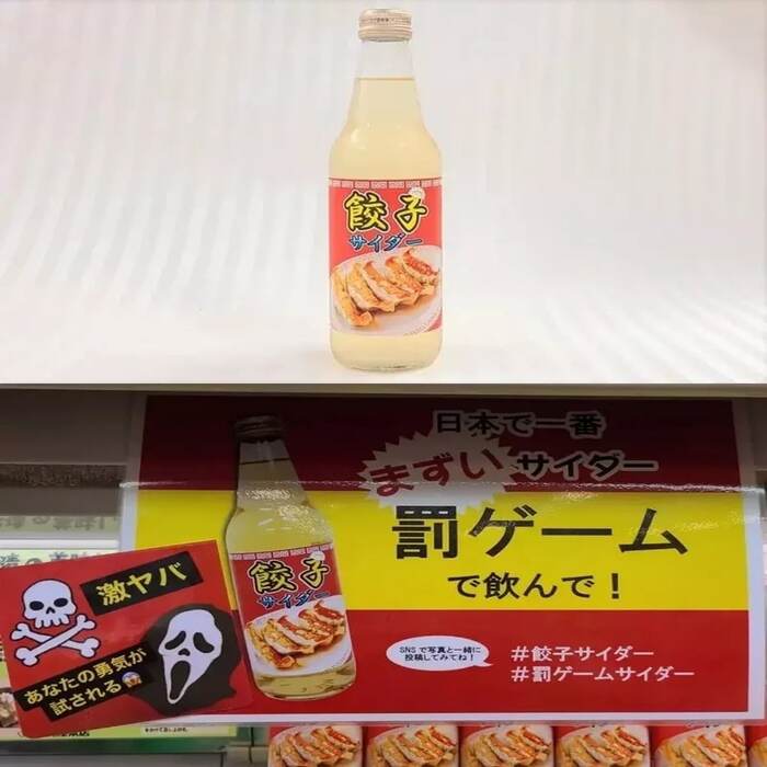 Газировку производит компания Nagai Garden, добавляя в продукт чеснок, уксус, масло чили и имбирь. К каждой бутылке прилагается письменная рекомендация – не пить "Гедза" в многолюдных местах.