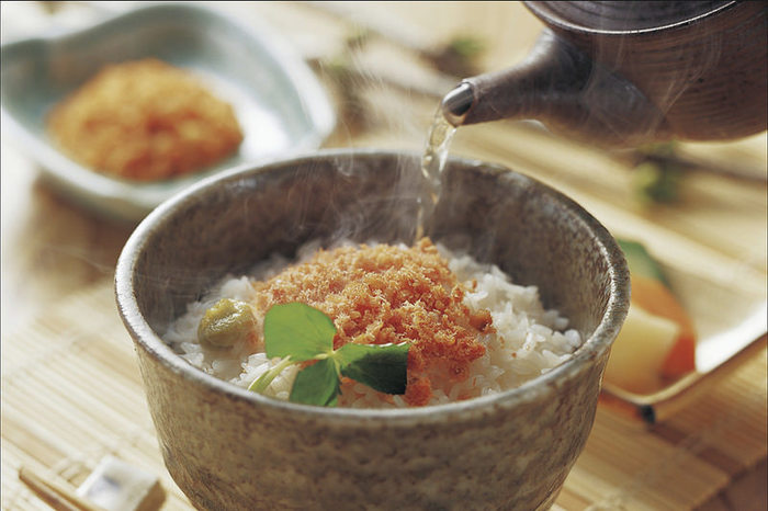 Представьте, что вы, будучи сильно не в духе, приходите на кухню и находите из съестного только остывший рис в кастрюльке на плите. Вы его чем-то там японским посыпаете, наливаете себе в кружку зеленый чай, а потом оп - неловкое движение рукой, и чай опрокидывается в рис! Подождите, не беситесь, попробуйте рис с чаем, возможно вам понравится.