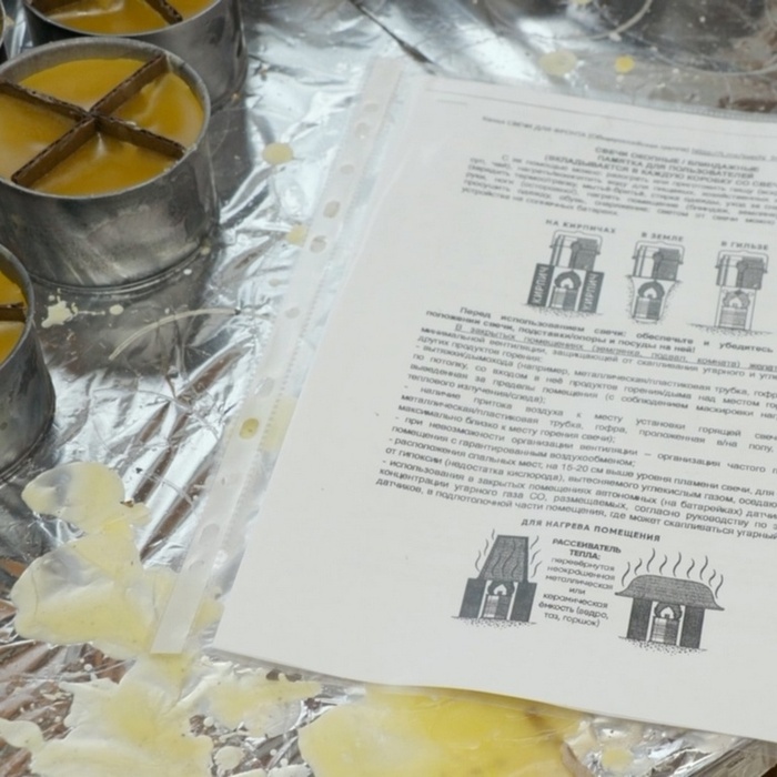 В каждую посылку, небольшую по размеру, входят не только свечи, но и стельки, носки, перевязочные материалы, лейкопластырь и антисептик, кровоостанавливающий жгут, обезболивающее средство, инструкция по использованию свечей, а также подвесы, позволяющие разогревать еду и чай. Волонтёрам требуются банки объемом от литра, в среднем такие свечи горят около шести часов и до 250 миллилитров – такие «малютки» военнослужащие берут с собой в бой, на случай ночёвки в окопе они смогут обогреться и поесть.