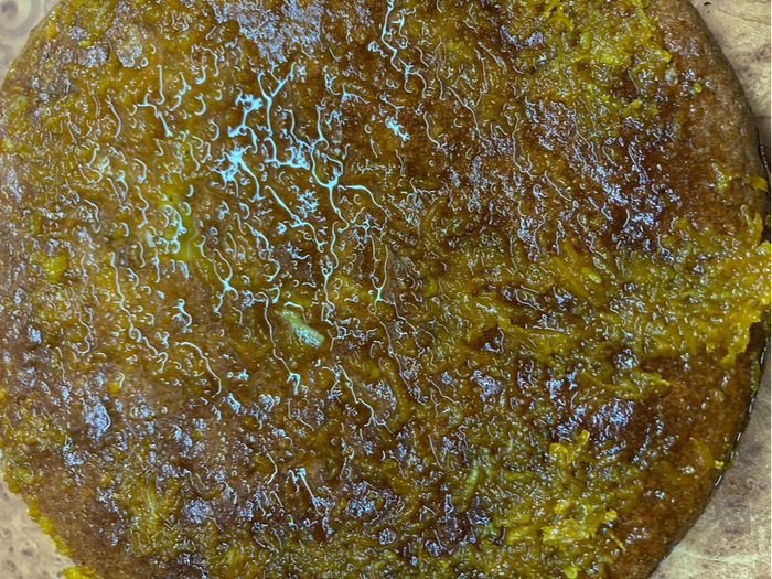 Берем противень, либо большую плоскую тару. Распределяем рис равномерно, и заливаем заправкой
