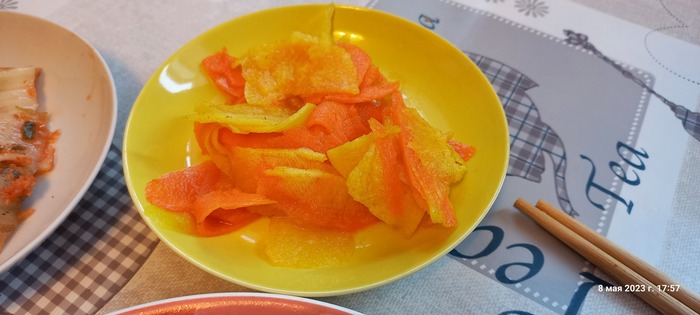 Почтеннейшая публика , разрешить мне представить моё виденье национального корейского блюда .Этим явством однажды меня меня угостили в "русифицированной" корейской семье в далёкие 80-ые. Я был в восторге ! Был взят рецепт , но за давностью лет потерян.