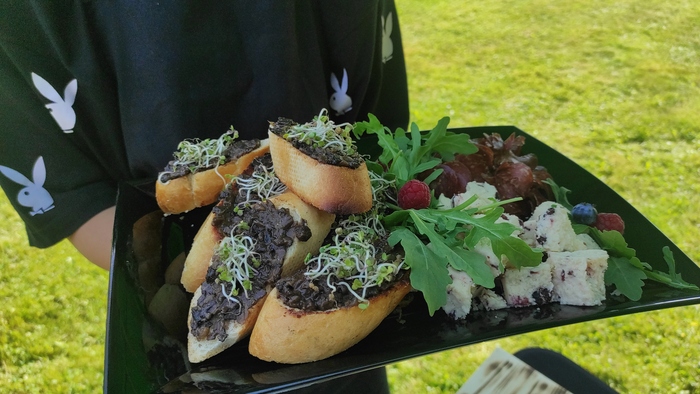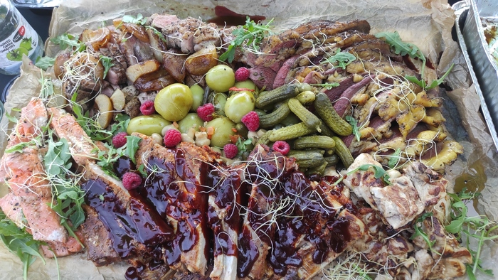 3.На лаваш равномерно распределяем творожную массу.На творог кладем хаотично ягоды.