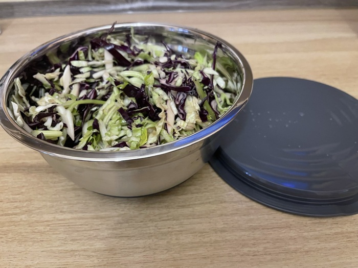 Нежнейшая свиная вырезка, в сладком азиатском маринаде. Салат из капусты и сельдерея с азиатской заправкой и обжаренным кунжутом. Подадим с нааном, для пикантности добавим маринованный пеперончини.