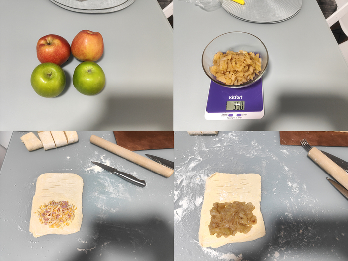 С ветчиной и сыром понравились больше, с яблоками начинка превратилась в пюре и это не понравилось, но тут моя не доработка я иногда позволяю себе делать на глаз. Надо было протушить слегка, чтобы доготовилось в процессе выпечки и сильно не разварилось. Тесто получилось лучше чем покупное, и даже более хрустящее и слоистое, чем из проф маргарина видны даже слои, чего не было ранее.
