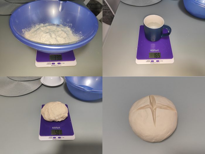 Взял 330 грамм муки, 165 грамм воды. За кадром остались 5 грамм соли. Все смешать и замесить. После первого замеса дал тесту отдохнуть 15 минут потом вымесил и отправил минимум на 30 минут в пакет и в холодильник. (кстати правильно посоветовали в прошлом посте добавлять в пресное тесто лимонной кислоты, чтобы слои лучше поднимались, но хоть я и знал про это, но в этом замесе забыл)