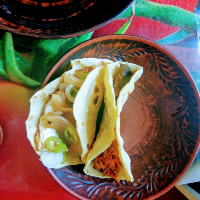 Складываем что там у вас есть на половину тортильи, прикрываем другой и едим. Можно свернуть трубкой. Спасибо за внимание.