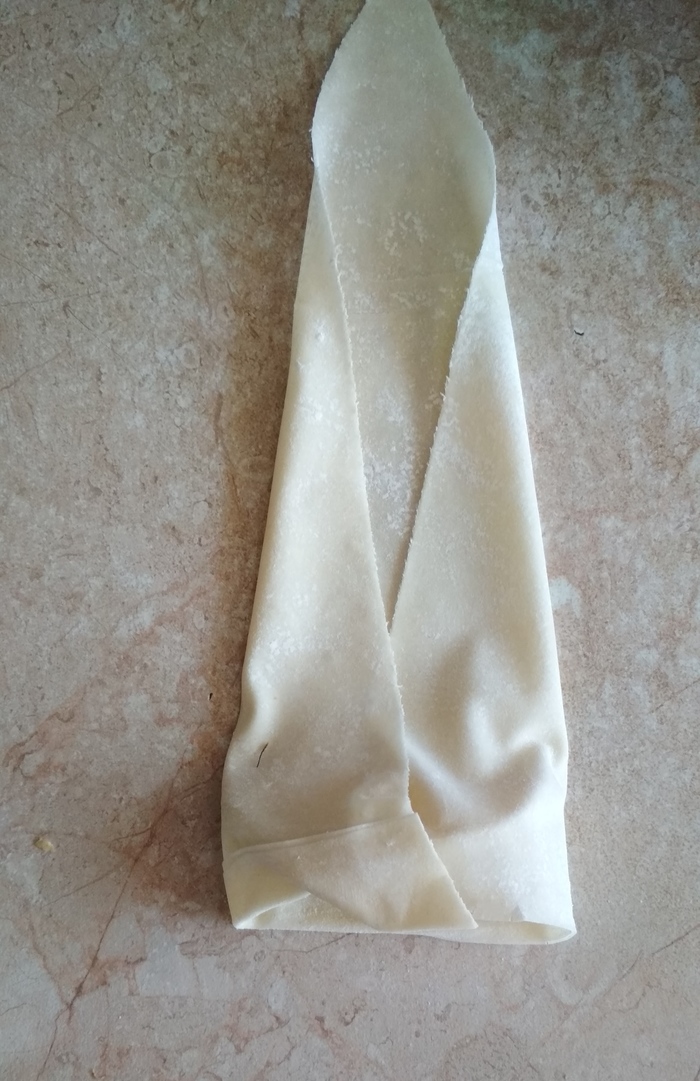 Тесто лучше нарезать в последний момент и сложив друг на друга, накрыть треугольнички от заветривания - высыхает моментально и начинает крошиться.
