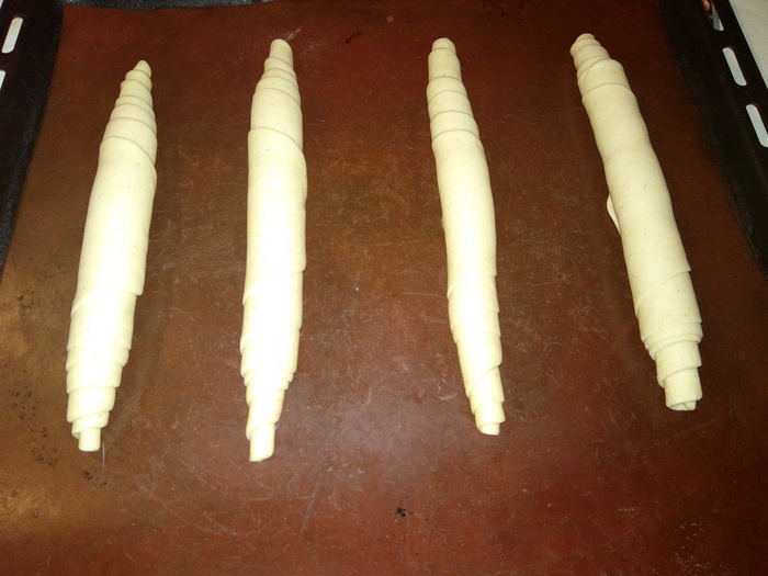 Можете смазать кончик рулетика яичным белком, чтобы лучше держался, но это не обязательно.