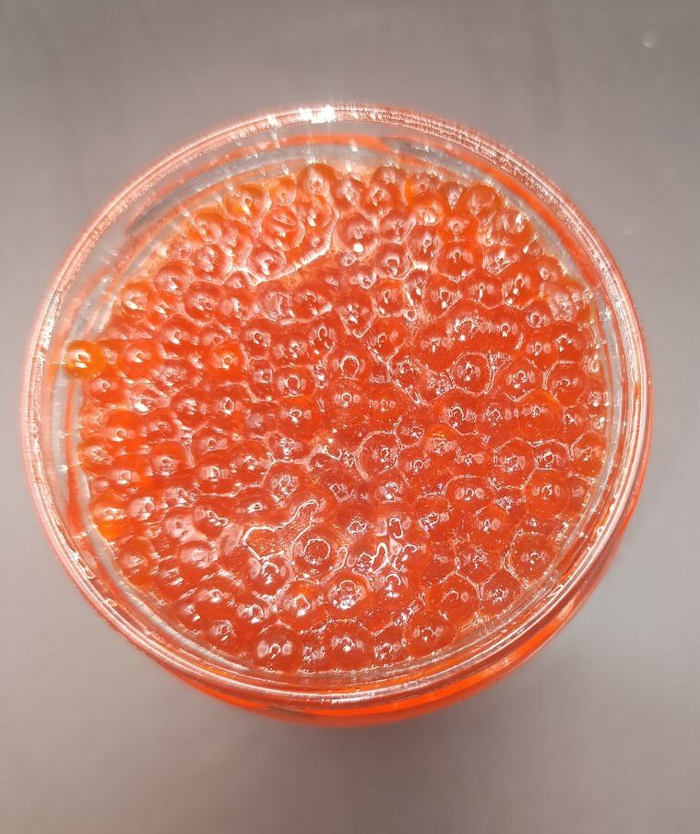 Структура очень водянистая, просто икринки плавают в жидкости. Икринки очень мягкие, вкус слабосолёный, сложно есть из-за консистенции всего этого месива. Может было неправильное хранение, может быть так и должно быть, но это этот экземпляр ушёл в мусорку вместе со своим "красноикорным" собратом.