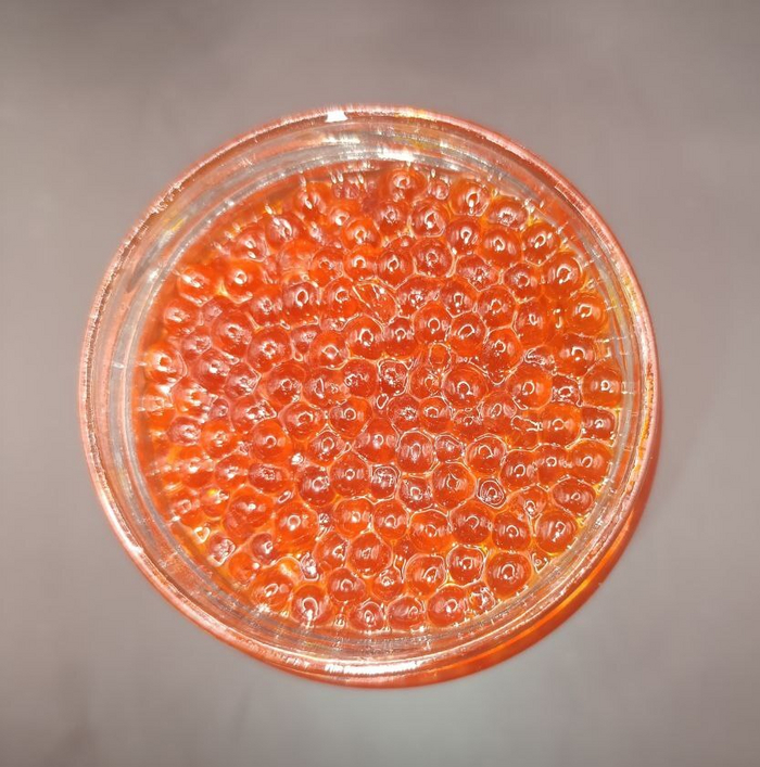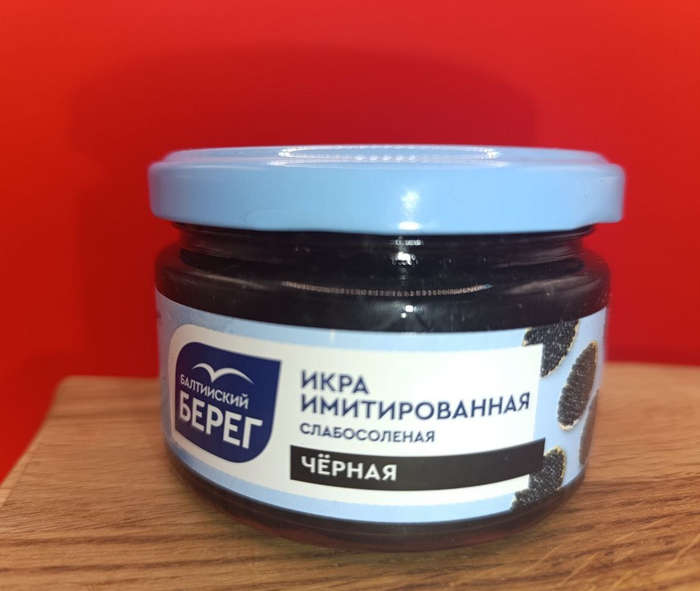 Выглядит похоже, запаха почти нет (как и в других экземплярах), икринки крупные, прилипают к друг дружке, структура склизкая. Вкус рыбный (в составе есть рыбный бульон), икринки мягкие, отдалённое сходство с настоящей икрой есть за счет рыбного вкуса, но не хватает икорной горечи и соли. Сам продукт совсем неплох, икру не заменит, но есть его приятно, а на бутер с маслом как родной ляжет)