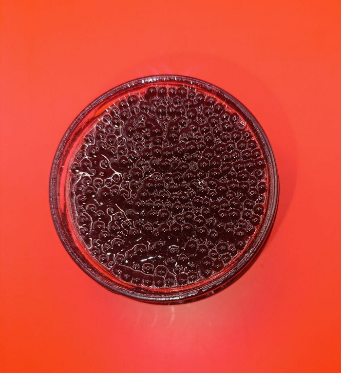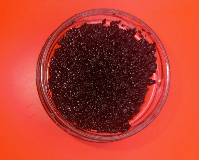 Икринки значительно меньше, но так и должно быть, они такие же упругие и весело лопаются как и в варианте с красной икрой от Fish House. Тоже есть элементы клейкости икринок к друг дружке, вкус рыбный, но насыщеннее, чем у красной икры, возможно, бульона больше добавили, в итоге вышло более концентрированно. Очень неплохо, но это совсем не чёрная икра, скорее просто рыбный продукт, сойдёт как украшение блюда, например.
