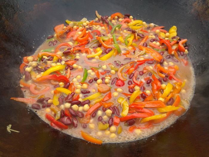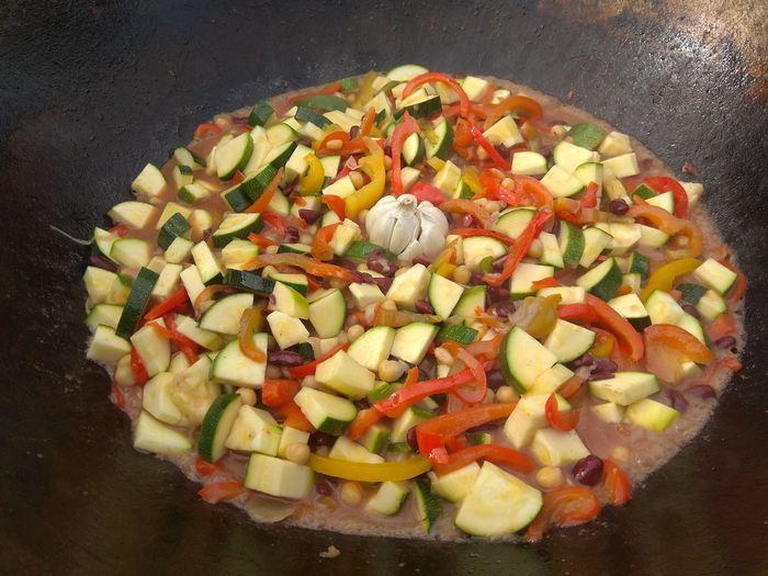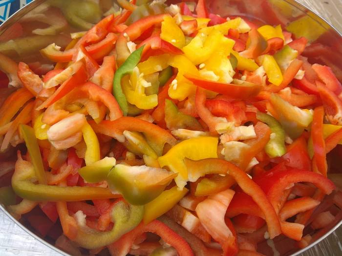 3. Курицу с грибами посолить, поперчить, добавить яйцо и сметану. Перемешать.