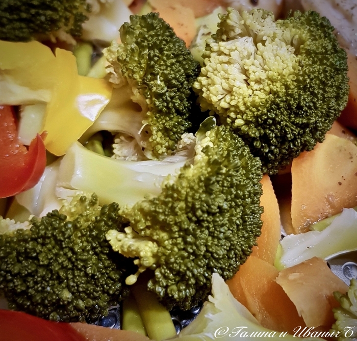 Понаслушившись и начитавшись всяких разных источников о том, что при приготовлении в пароварке овощей, они не теряют ничего из своих полезных свойств, в смысле вкуса и витаминов, то эти самые овощи были использованы … ну, пусть будет, в качестве гарнира.
