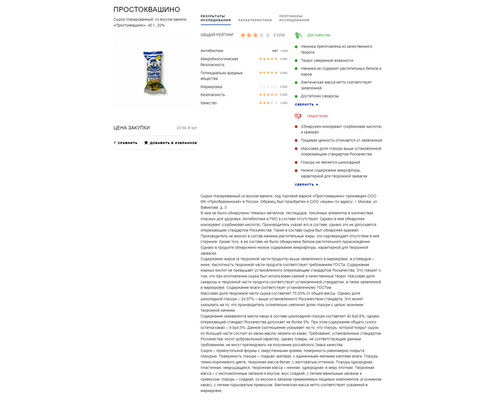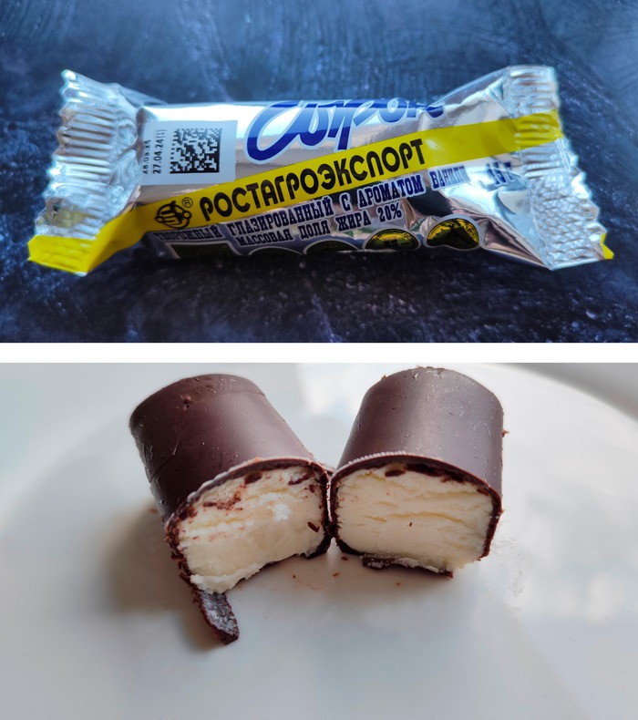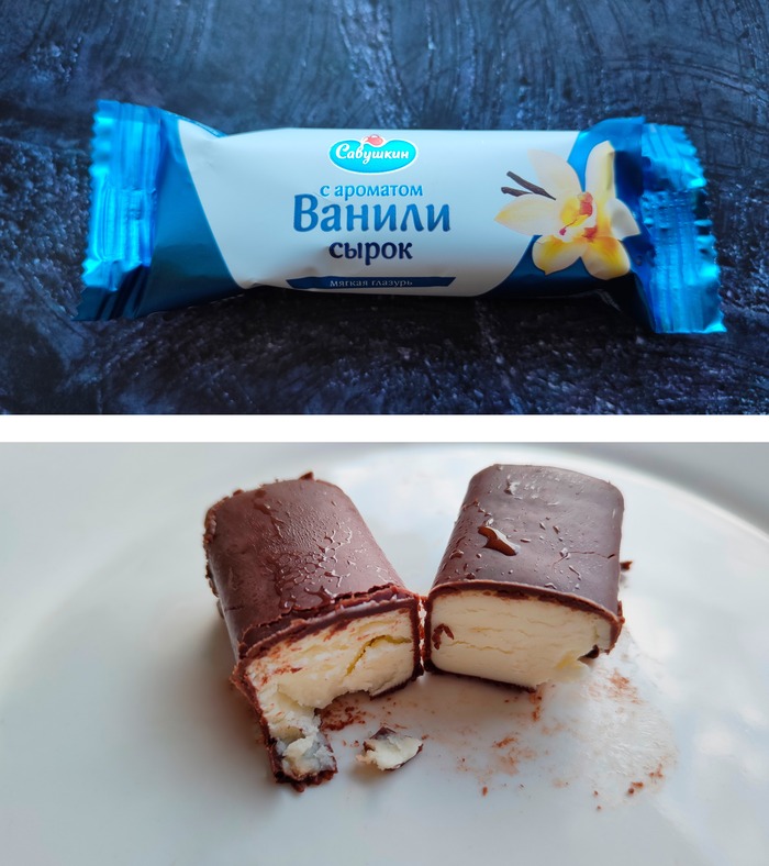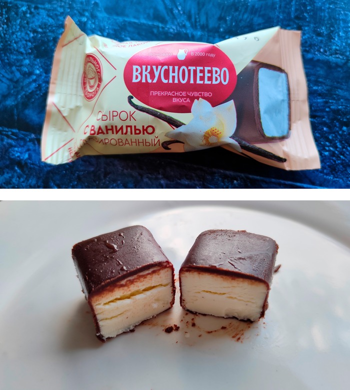Вкусовые качества: Глазурь молочная и очень сладкая, начинка же умеренно сладкая с легким вкусом творога. Ванильный привкус ощущается, но вкус самого сырка слегка странный, будто немного неестественный.