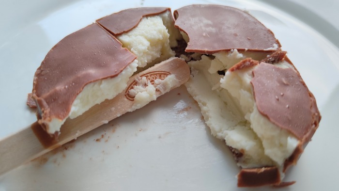 Выглядит сырок аккуратно и очень необычно, напоминает мороженное на палочке. Аромат молочного шоколада.