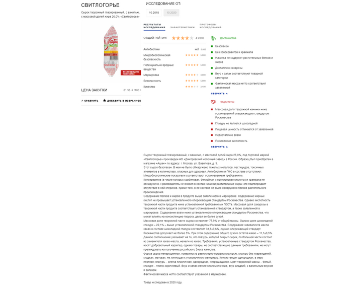 Оценка Роскачества: 4.8. Исследование от 10.2020.