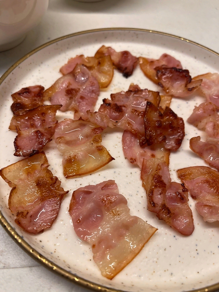 Далее, нужно заняться приготовлением хрустящих засахаренных орехов. Бекон пожарьте и нарежьте. Измельчите грецкие орехи и тыквенные семечки, смешайте их с кленовым сиропом и кайенским перцем, а затем выложите на противень и отправьте в духовку на несколько минут при температуре 200 градусов. Посолите полученную смесь и перемешайте с беконом.